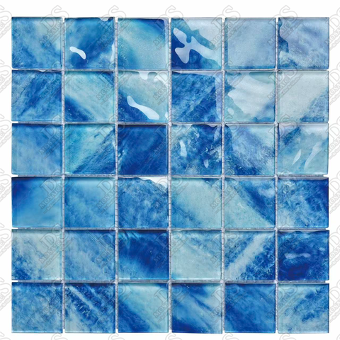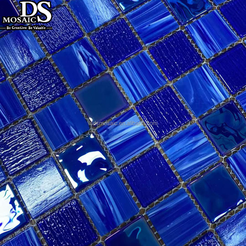 Azulejo de mosaico de vidrio pulido de fábrica profesional DS, azulejo de suelo para piscina, mosaico cuadrado de vidrio de 4mm para exteriores